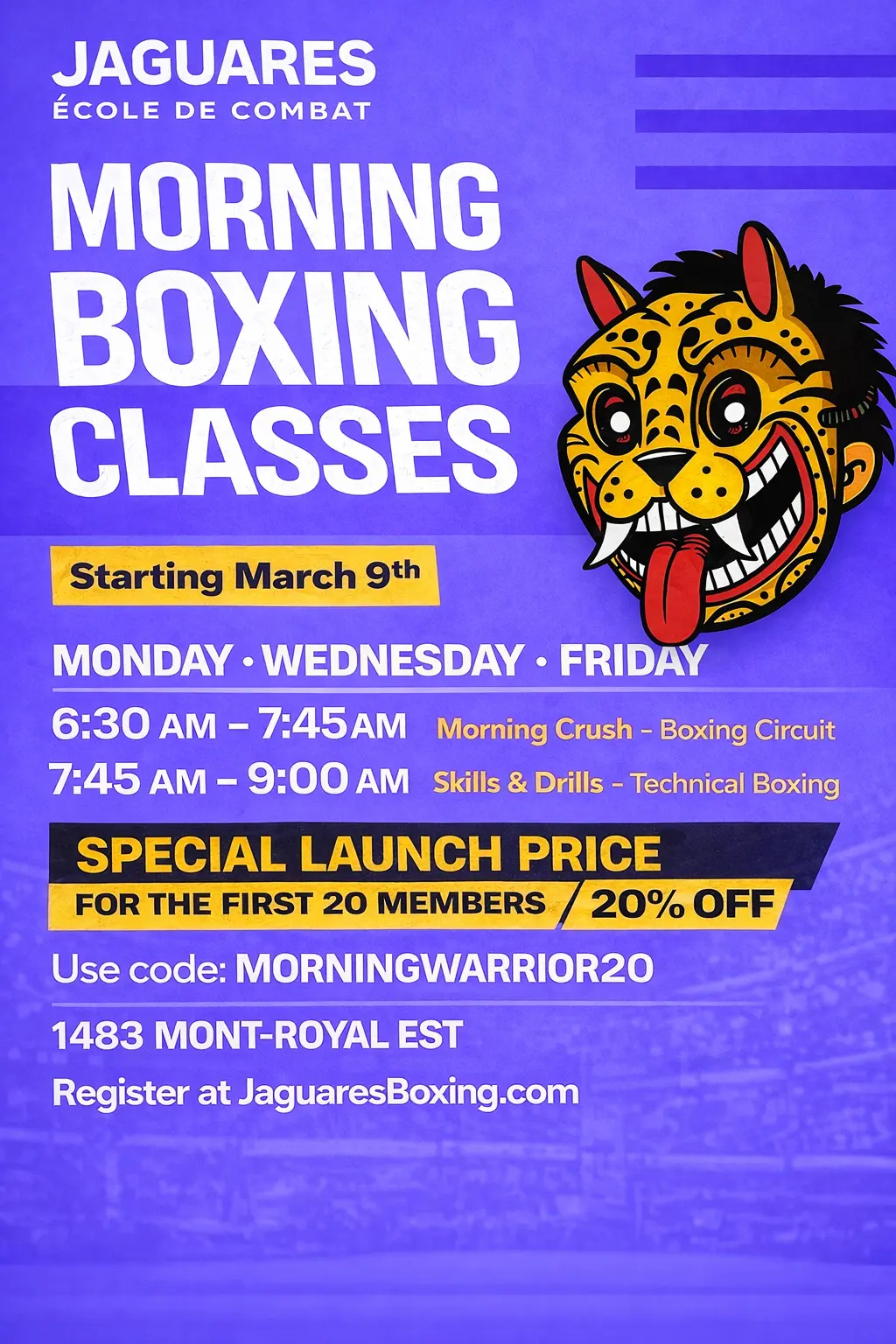 Welcome to Jaguares École de Combat, a premier combat sports training center located in the heart of Plateau Mont-Royal.